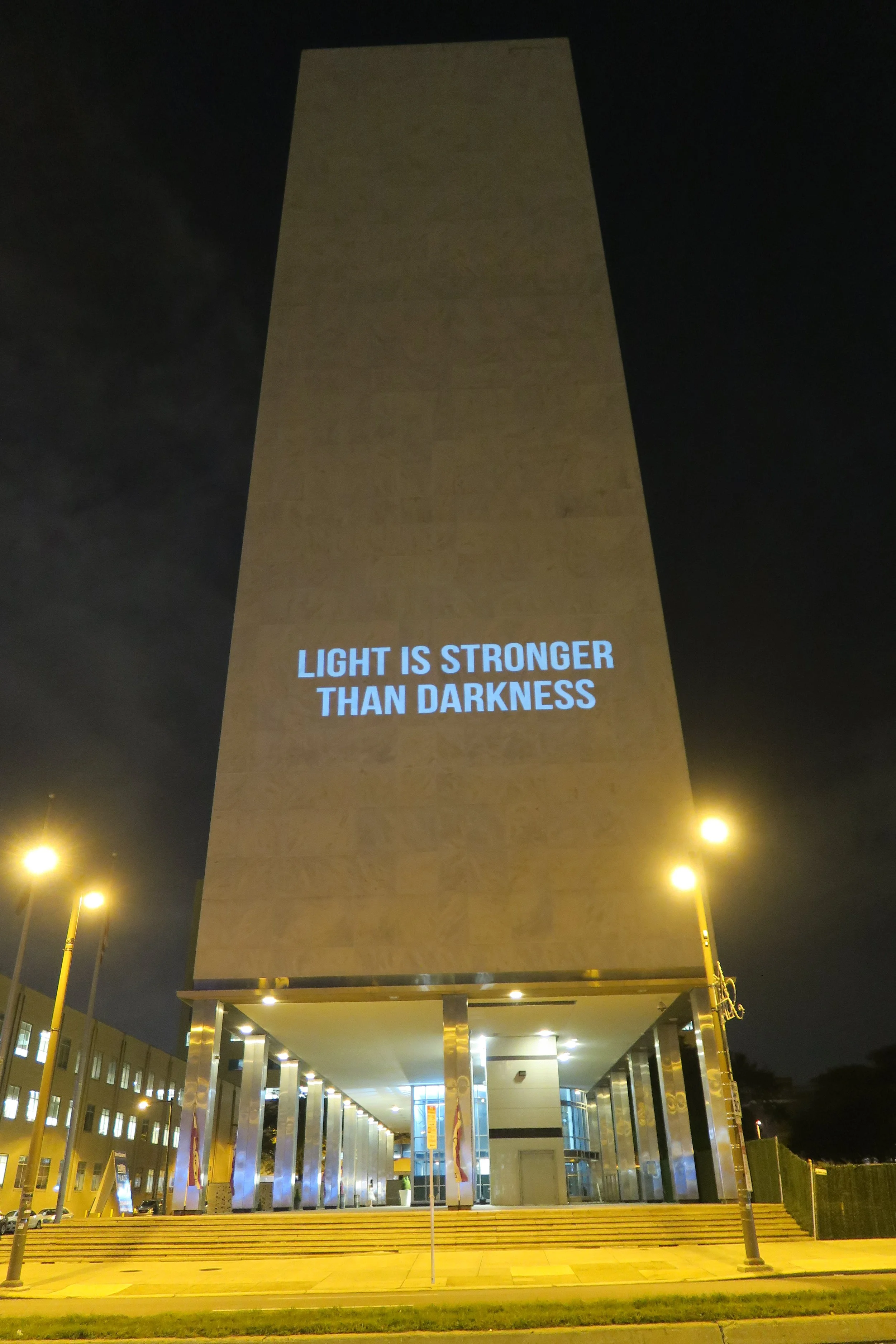 Since 2015, I’ve been experimenting with projecting video outdoors, on buildings, walls and windows. I’m interested in sneaking new messages and images into our built environment and landscape, hoping to spur curiosity and resurface the stories, faces and ideas that often get buried behind the walls.