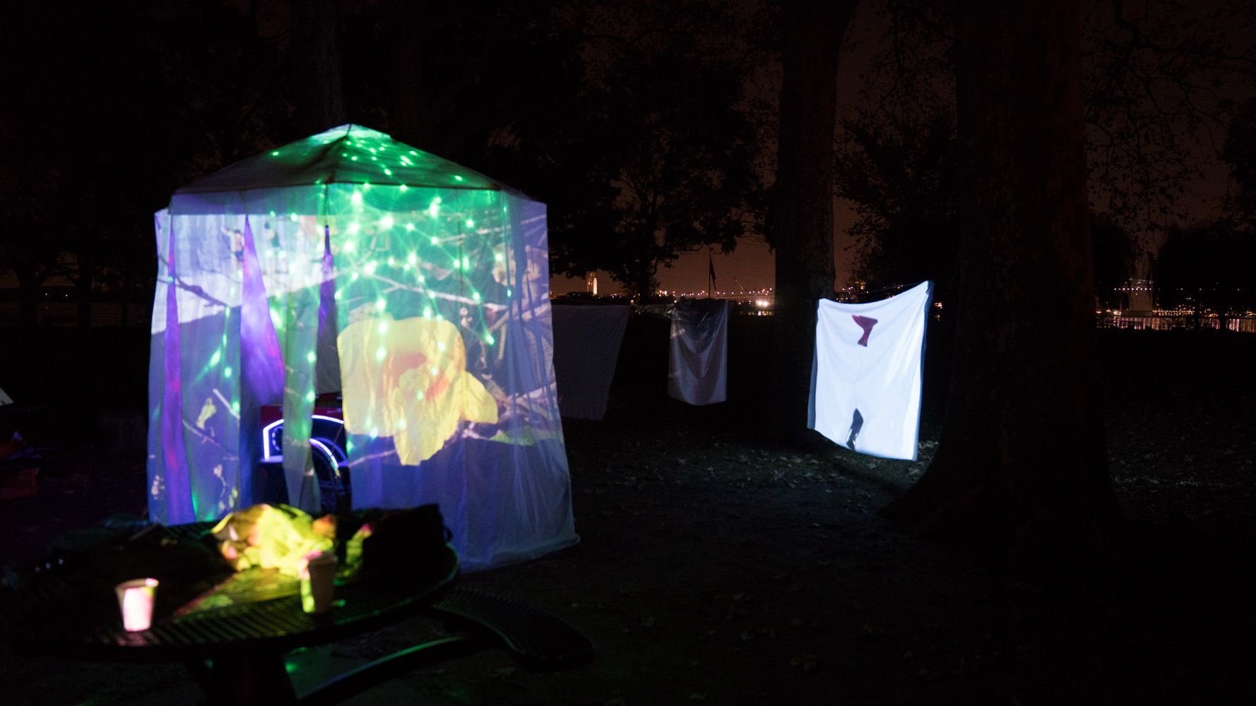 In 2018, we repurposed the Hot Tea tricycle into a mobile projector bike with built in speakers, solar charged battery and LED lights. The projector bike has done pop up screenings, guerrilla projections and experimental installations. We are always open to new ideas and collaborations!